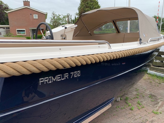 Cabrioverdeck mit Plane, um den 700 komplett wasserdicht an Land verschließen zu können. Klappbares Verdeck, um während des Segelns geschützt zu sein. Set besteht aus hochwertigem Stoff, Rahmen aus Edelstahl und Plane.