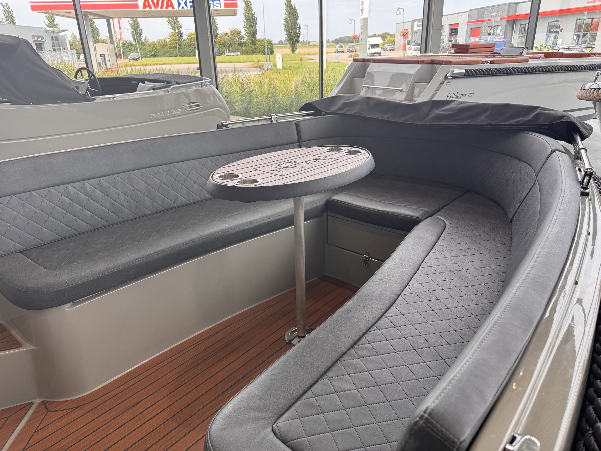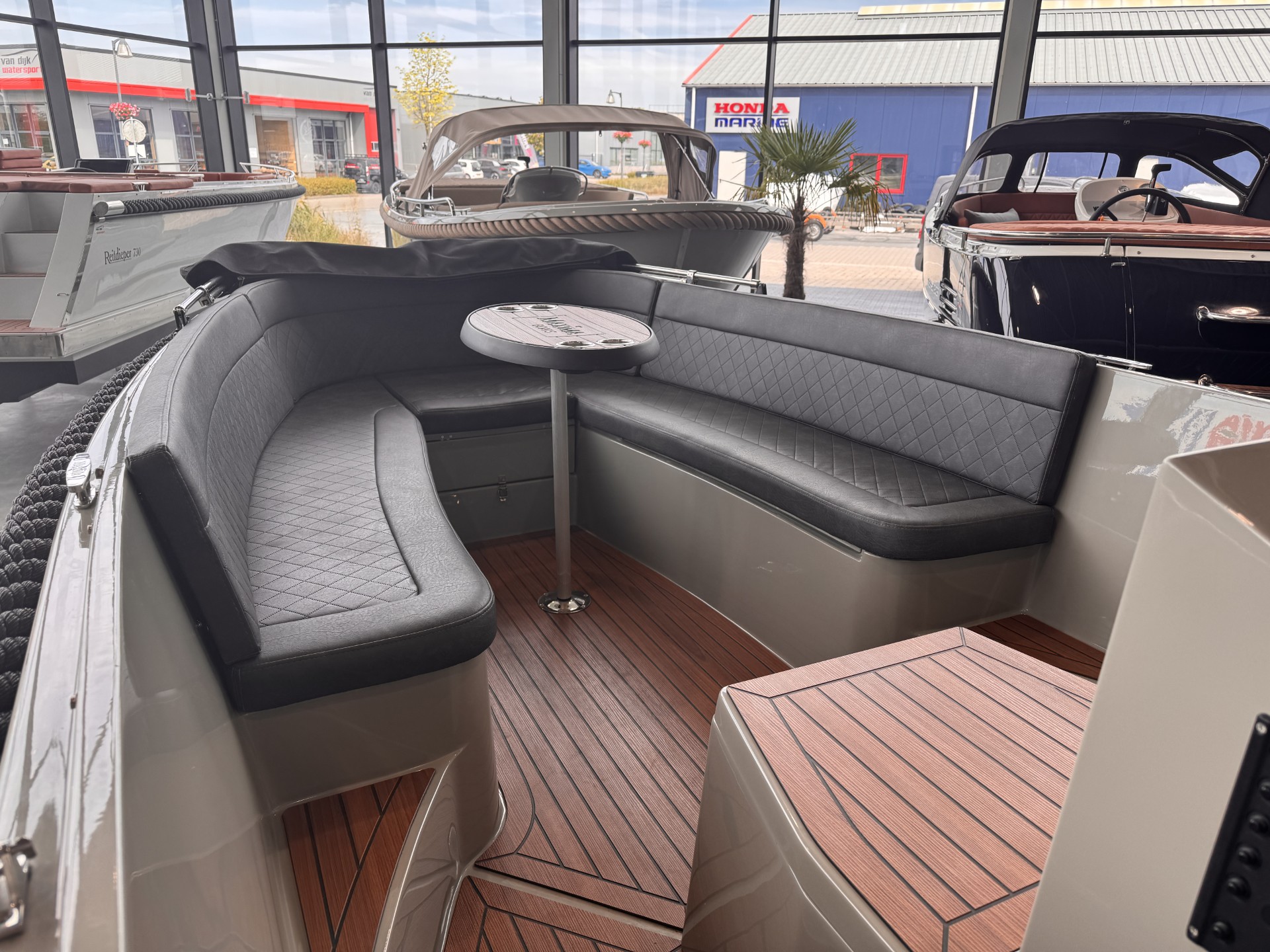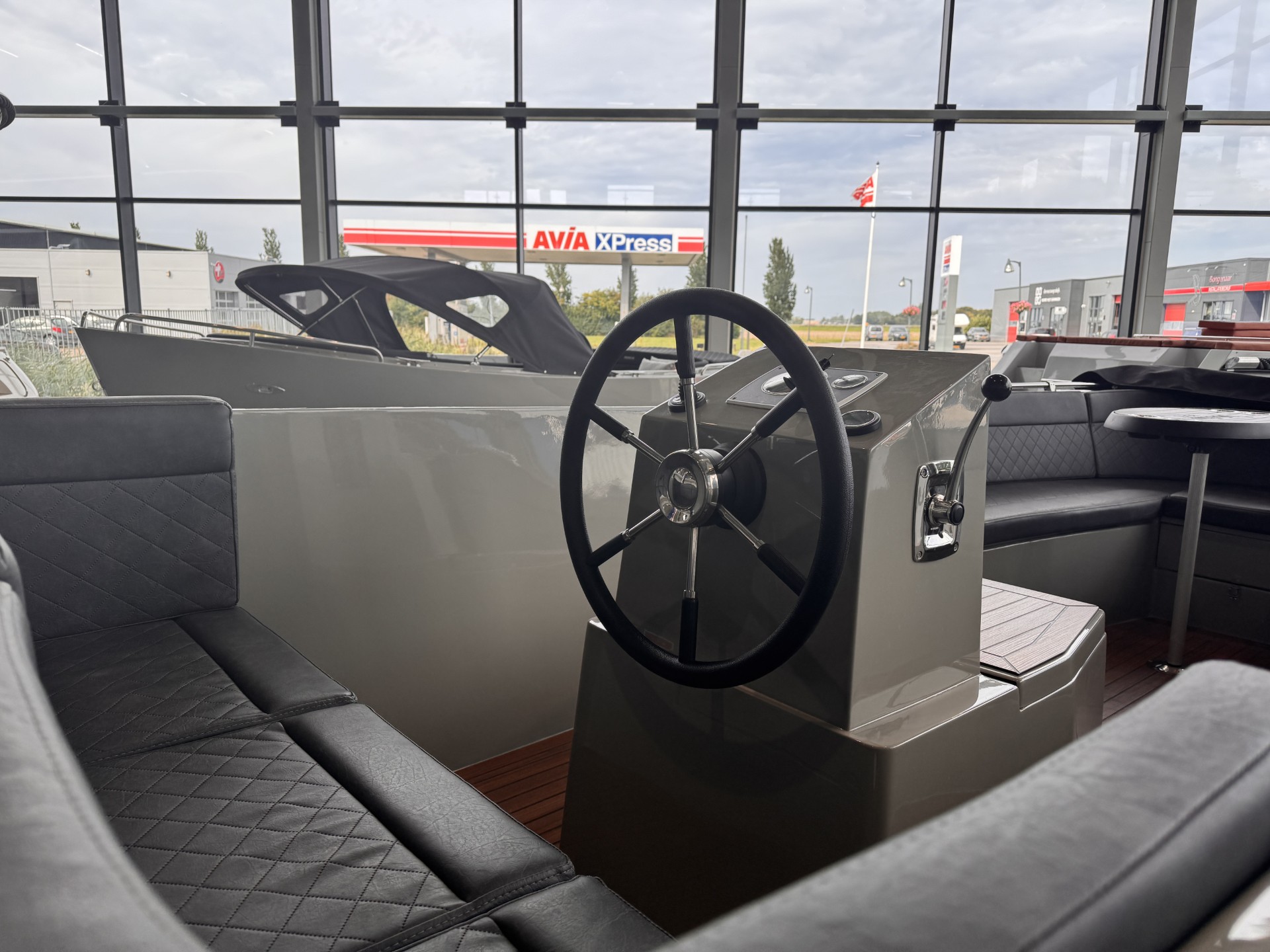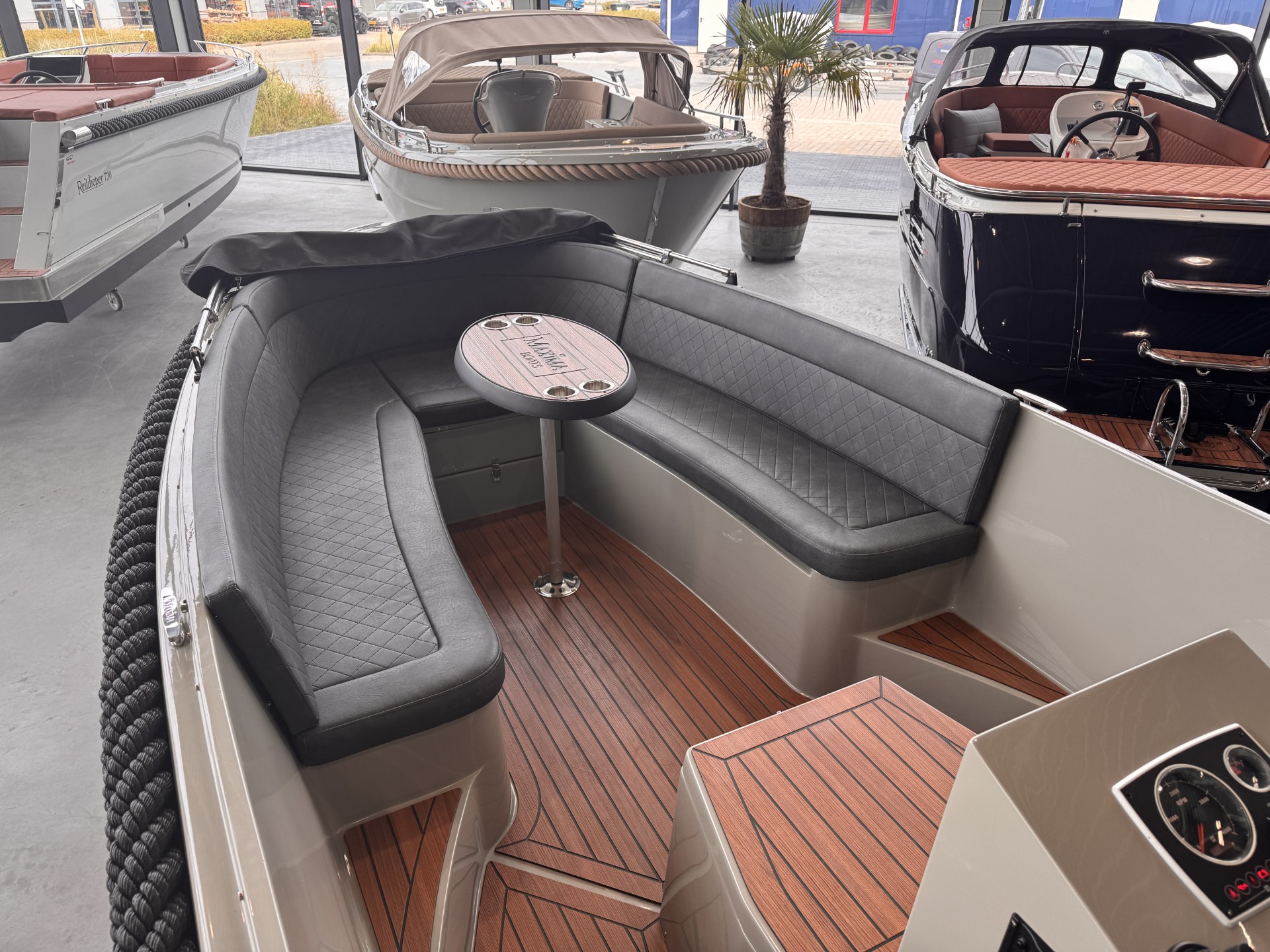 Met een lengte van 6 meter en een breedte van 2,25 meter biedt deze Maxima 600 ruimte aan 6 tot 8 personen. De diepe kuip met een comfortabele rondzit, luxe Markilux kussenset en een aparte 3-persoons achterbank biedt veel zit- en leefruimte aan boord. De praktische achterinstap met deurtje en het zwemplateau zorgen voor eenvoudig in- en uitstappen. De motorruimte is geïsoleerd, waardoor het motorgeluid tot een minimum wordt beperkt. De kuip is bovendien zelflozend.