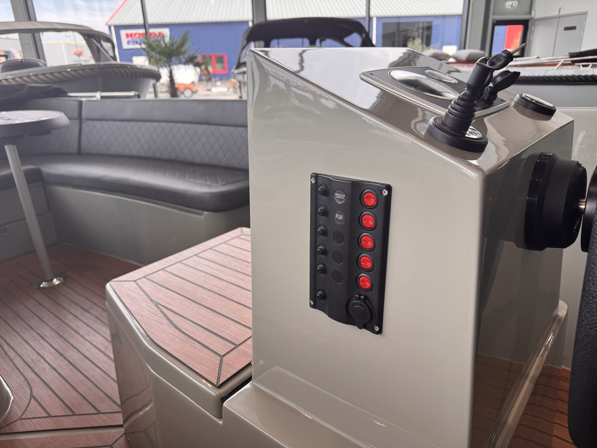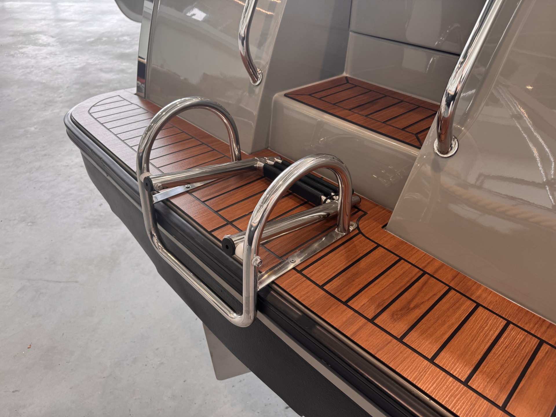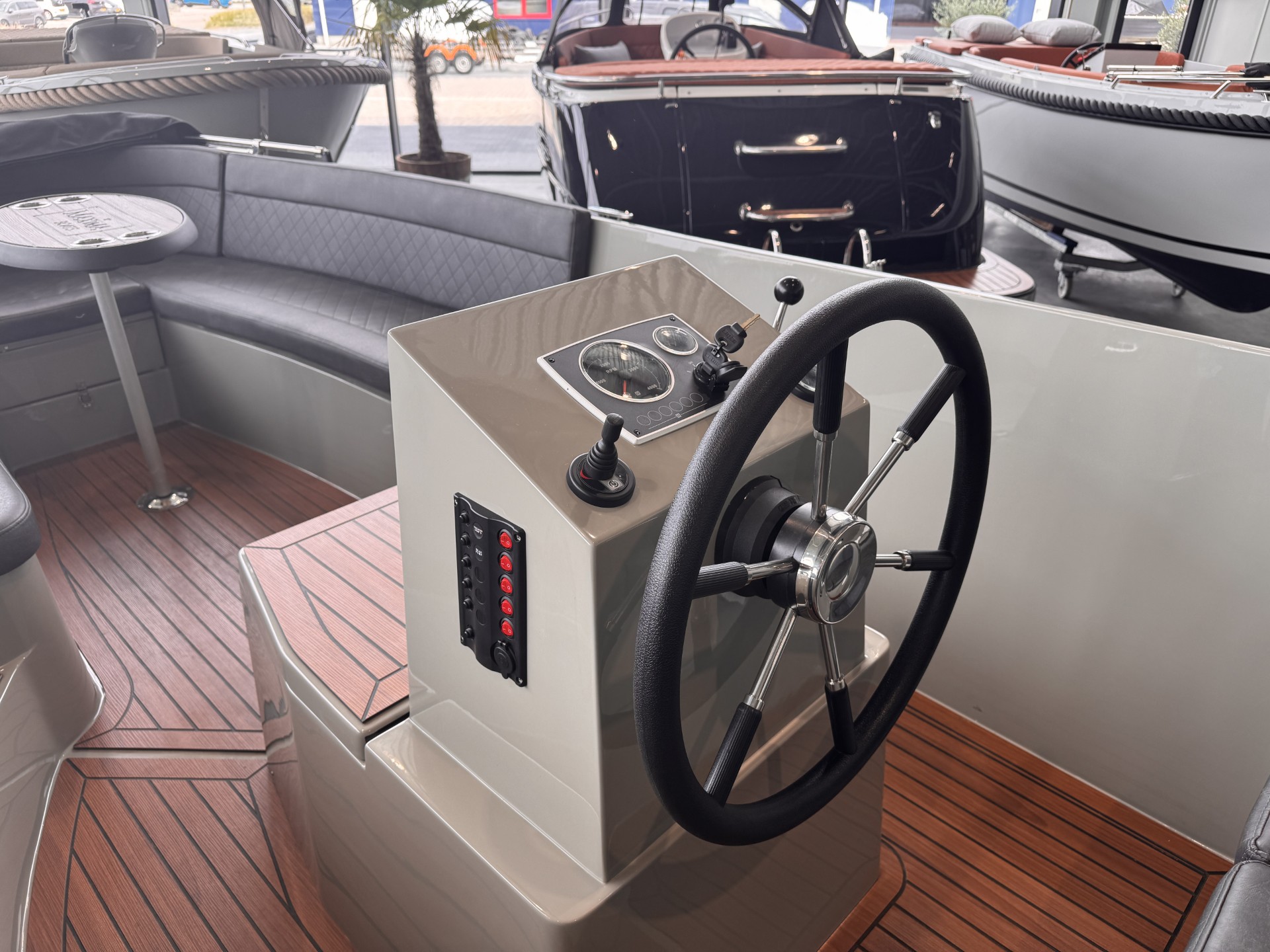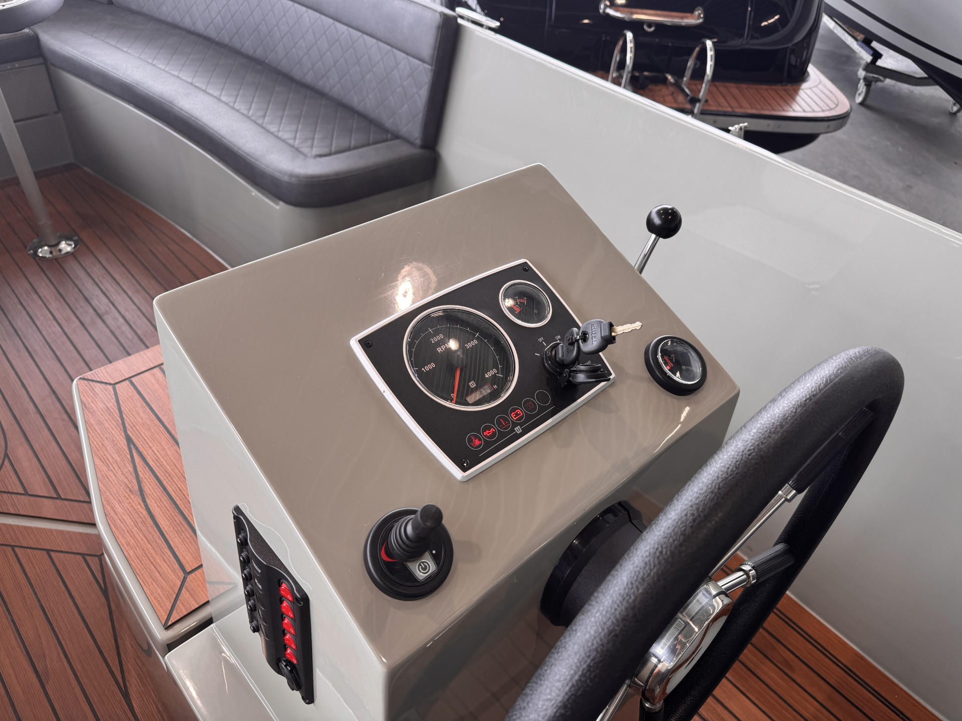 Een teakpakket om de 600 Diesel af te maken. De set bestaat finteak op de kuipvloer en zwemplateau, boeg navigatieverlichting, automatische bilgepomp en bedieningspaneel met 12V aansluiting om verlichting mee in te schakelen.