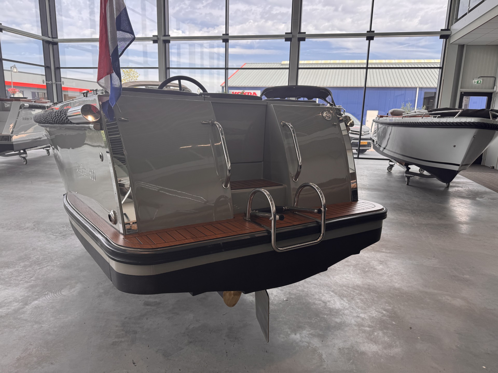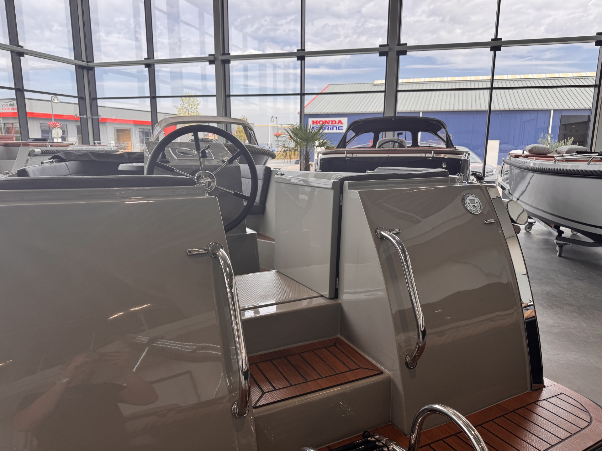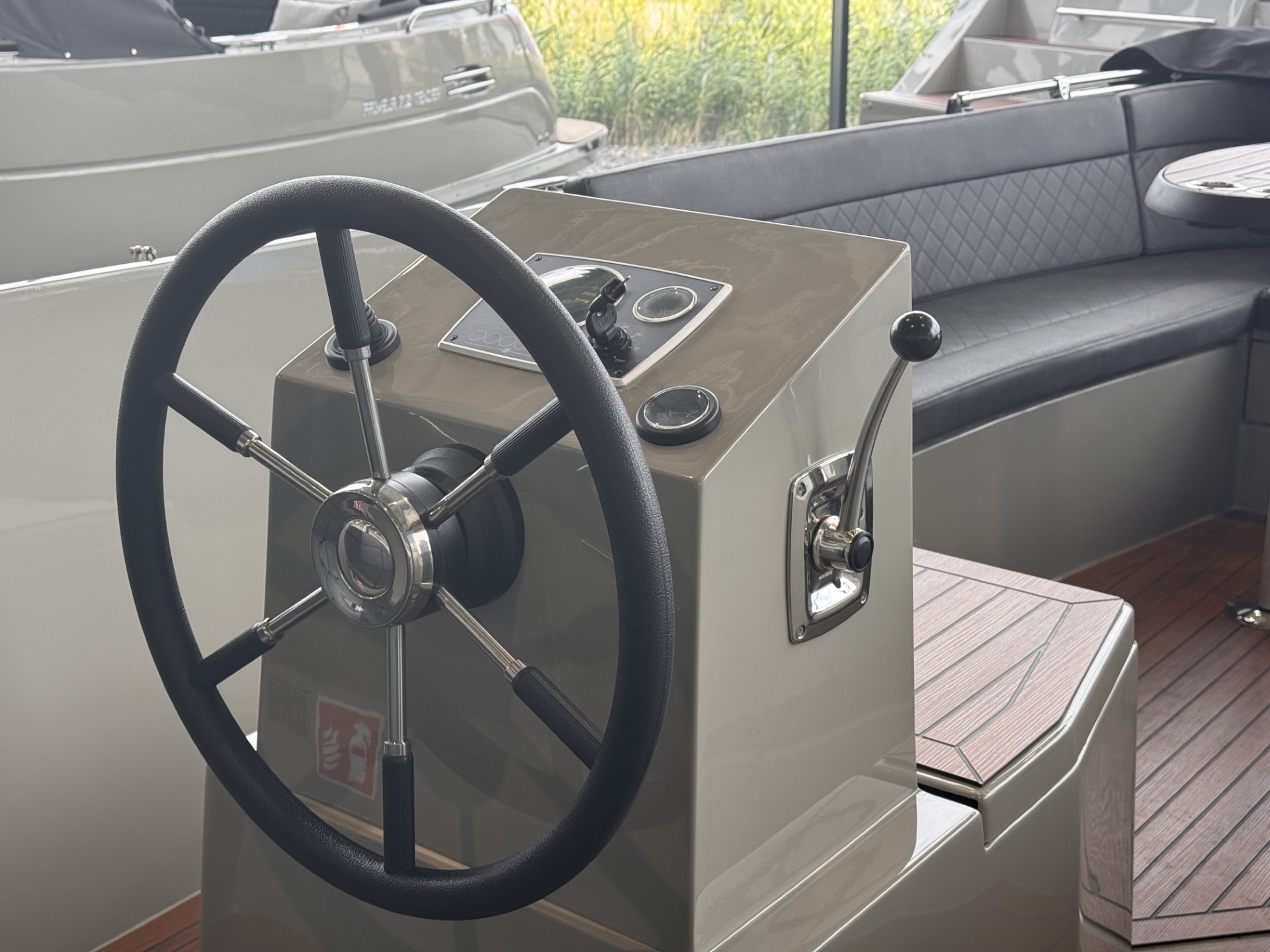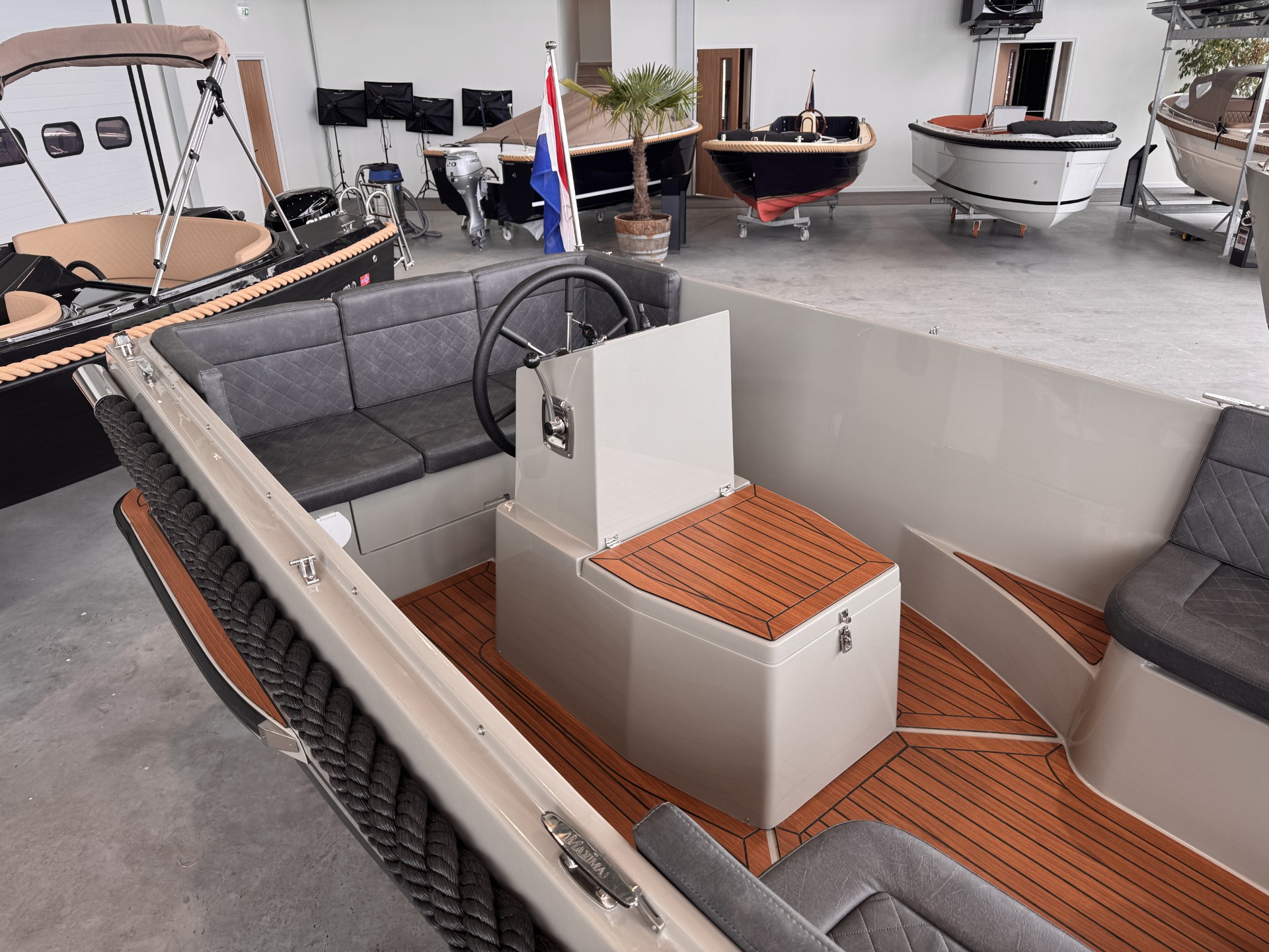 Een teakpakket om de 600 Diesel af te maken. De set bestaat finteak op de kuipvloer en zwemplateau, boeg navigatieverlichting, automatische bilgepomp en bedieningspaneel met 12V aansluiting om verlichting mee in te schakelen.