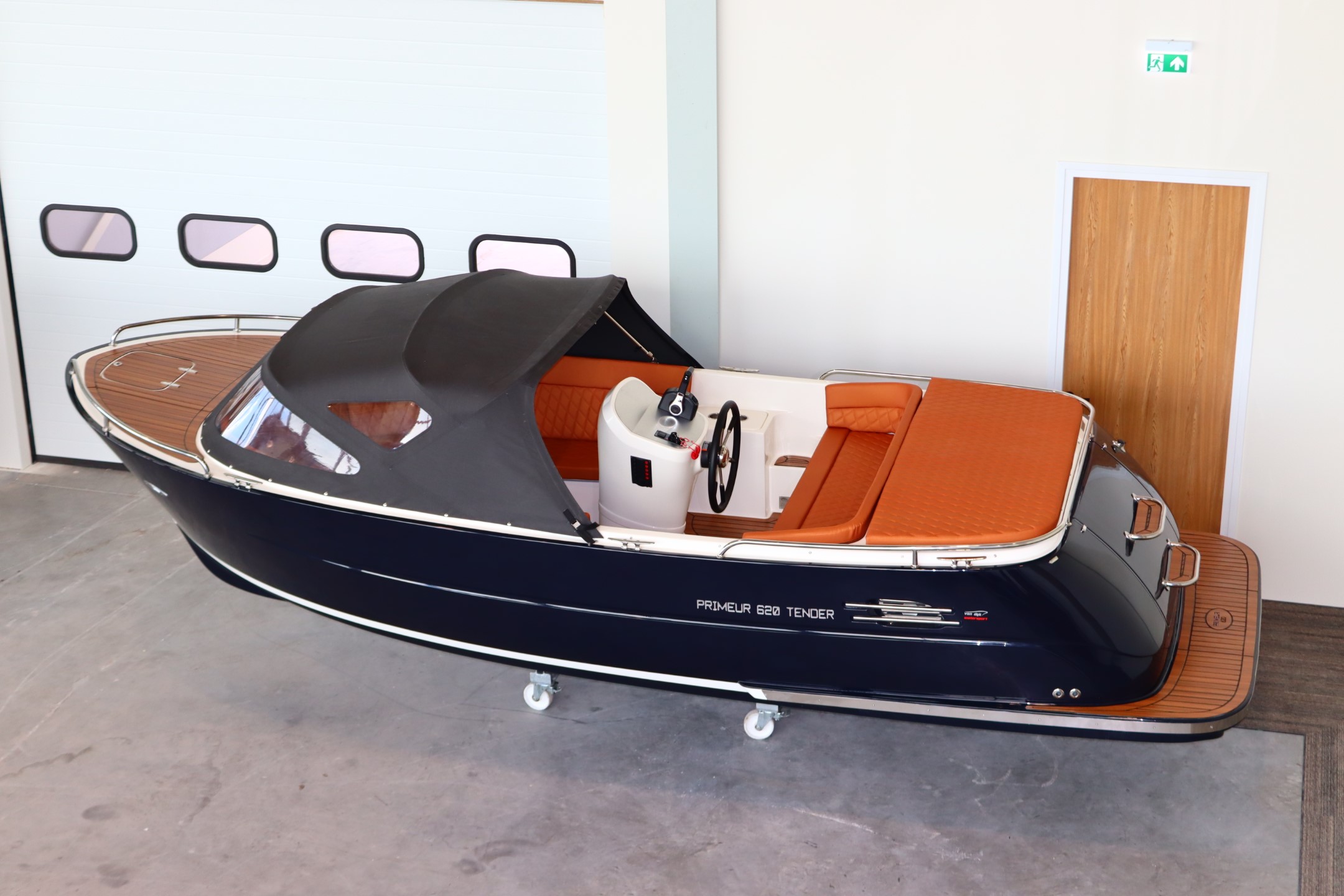 Ontdek de Primeur 620 Tender, een uitblinker in onze collectie die ruimte, comfort en uitmuntende vaareigenschappen perfect combineert. Deze sloep, met zijn stabiele onderwaterschip, is ideaal voor zowel kalme vaartochten als voor snellere ritten tot 60 pk. Met de Primeur 620 kies je voor maatwerk: van milieuvriendelijke elektrische motoren tot luxe bekleding en stijlvolle kleurstellingen. Of je nu wilt ontspannen in de diepe kuip met hoge rugleuningen of wilt zonnen op een veelzijdig zonnedek dat ook als tafel functioneert, deze tender biedt comfort en klasse voor een breed publiek. Beleef elk moment op het water als een luxe ervaring met de Primeur 620 Tender, het toppunt van moderne elegantie op het water.