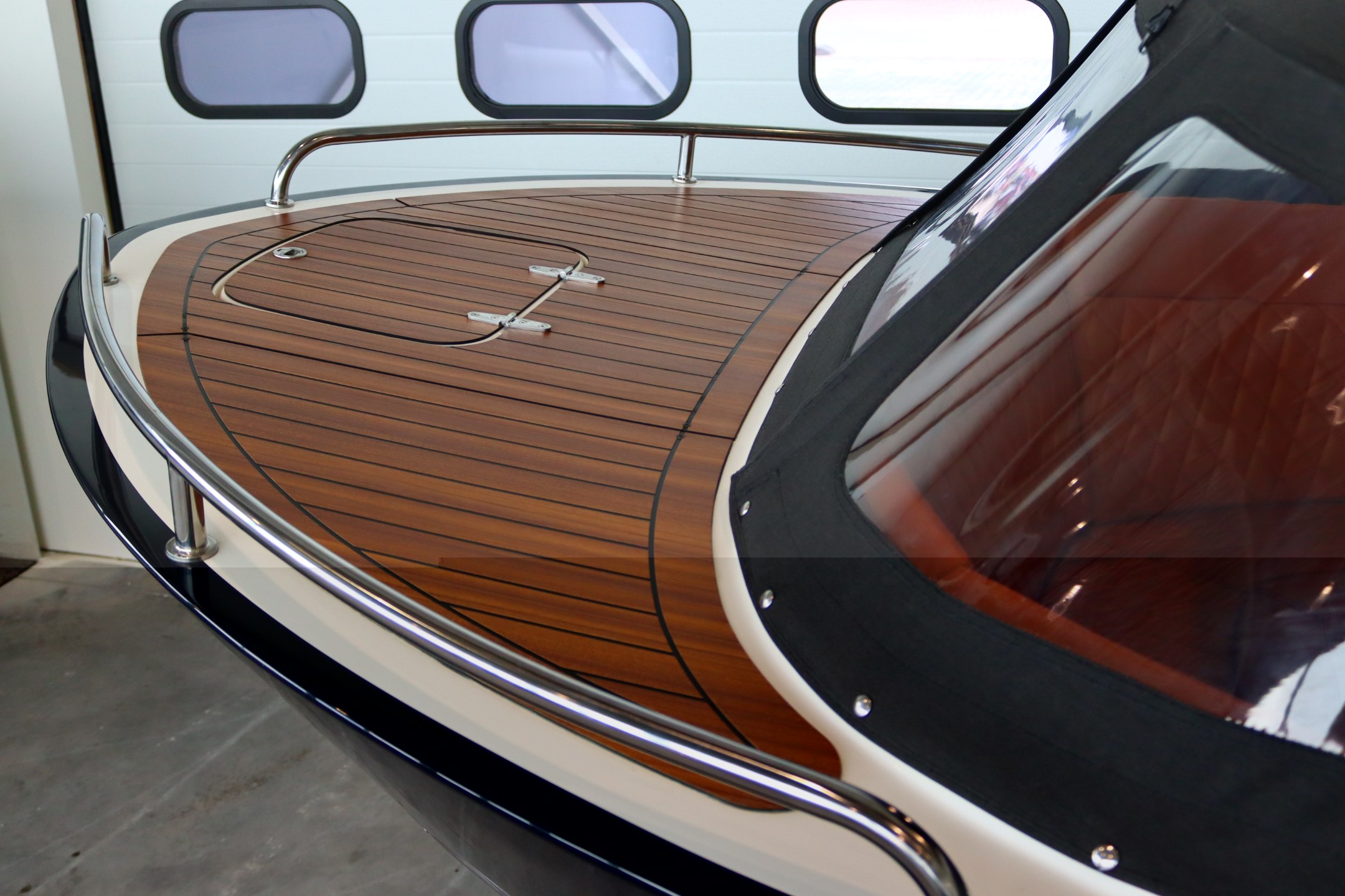 Praktisch opbergvak in de boeg om de zonnedekplanken netjes en veilig op te bergen – altijd binnen handbereik en uit het zicht