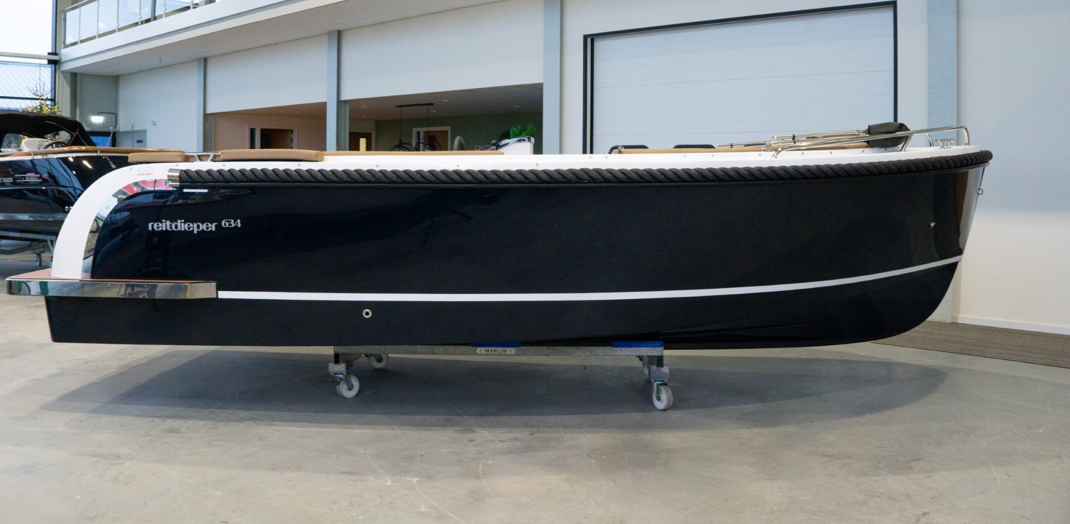 De Reitdieper 634 Tender is standaard voorzien van alles wat je nodig hebt voor een heerlijke dag op het water: een ruim zonnedek, luxe RVS afwerking op het zwemplateau, een Vetus schakelkast, stijlvolle waterlijnbies Verder biedt dit model een stabiele, koersvaste vaarervaring en is het geschikt voor zowel langzaam als snel varen, wat het de ideale keuze maakt voor diverse vaaromstandigheden.