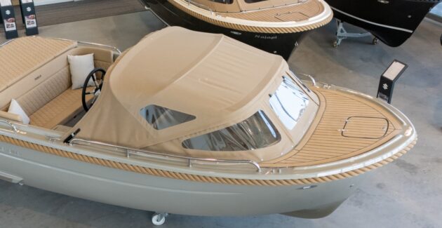 Cabriokap met afdekzeil om de 615 Tender aan wal volledig waterdicht te kunnen afsluiten. Opklapbare cabriokap om tijdens het varen beschut te zitten. Set bestaat uit hoogwaardig doek, RVS frame en zeil.